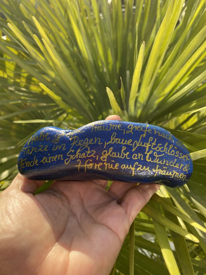Text Rückseite: Habe große Träume, greife nach den Sternen.Tanze im Regen, baue Luftschlösser. Finde einen Schatz, glaube an Wunder & Höre nie auf zu träumen … ( Preis auf Anfrage )