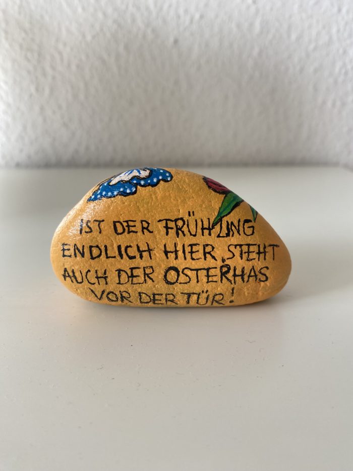 19. März 2026 Osterhase im Blumentopf Text Rückseite : Ist der Frühling endlich hier, steht auch der Osterhase vor der Tür! H.7,5 cm x B.7 cm ( Preis auf Anfrage) Post Info Author Info Petra Wegner 19. März 2026 Medialkunst (Startseite), Steinkunst, Steinkunst zu kaufen Vorheriger Beitrag Verrückte Hühner Nächster Beitrag Häschen mit Blumenstrauß Petra Wegner Administrator Beiträge von Petra Wegner Mum & Me Häschen 19. März 2026 Häschen auf Blumenwiese 19. März 2026 Häschen mit Blumenstrauß 19. März 2026 Verrückte Hühner 19. März 2026 Donald Duck 1. März 2026 Kommentare von Petra Wegner Vorheriger Beitrag « Nächster Beitrag » Facebook Instagram Email Kategorien Ausstellungen Bilder Bilder Verkauft Bilder zu kaufen Blogbeiträge Entstehungen Medialkunst (Startseite) Steinkunst Steinkunst Verkaufte Steinkunst zu kaufen